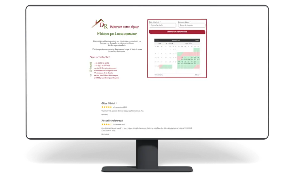 L’un des aspects les plus importants de ce projet était l’intégration d’un système de réservation performant, capable de gérer les réservations en ligne de manière simple et efficace. Ce système permet aux visiteurs de consulter la disponibilité des gîtes en temps réel, de réserver en ligne et de recevoir des confirmations instantanées. Cela facilite grandement le processus de réservation pour les clients et pour les gestionnaires du domaine.